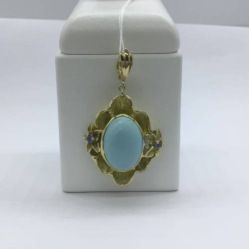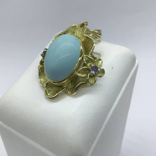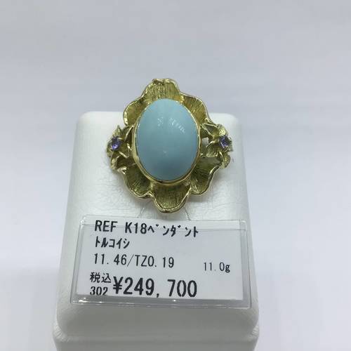 | コメント | 12月誕生石の大きなトルコイシが印象的です。両サイドには花が添えらて豪華の中に可愛さもあるペンダントトップです。 |