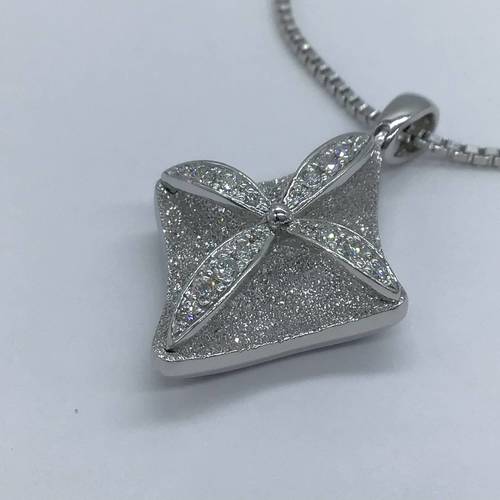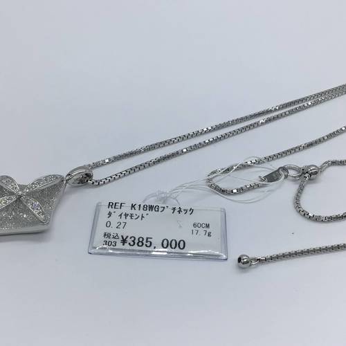 | コメント | ホワイトゴールドの地金の煌めきと立体感のあるデザインが豪華な感じを出しています。ベネチアンチェーンが60CMと長めですが、スライドアジャスターにより長さ調整可能。 |