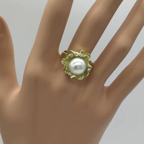 | コメント | 6月誕生石のパールは10MM玉と存在感のあるリングです。回りには花びらのようなデザインが可愛らしい雰囲気のあります。 |