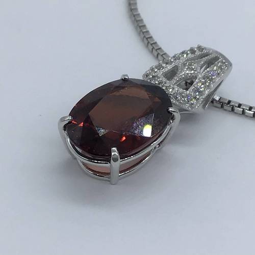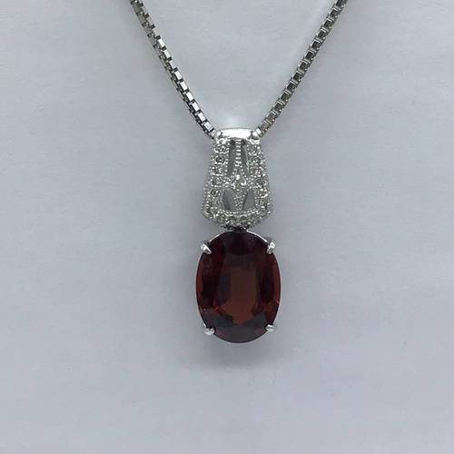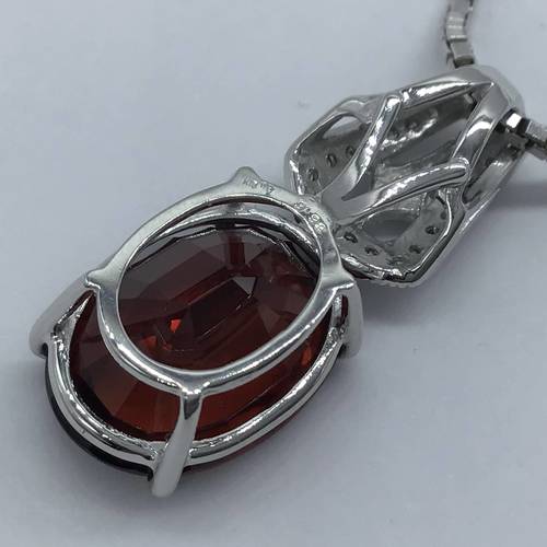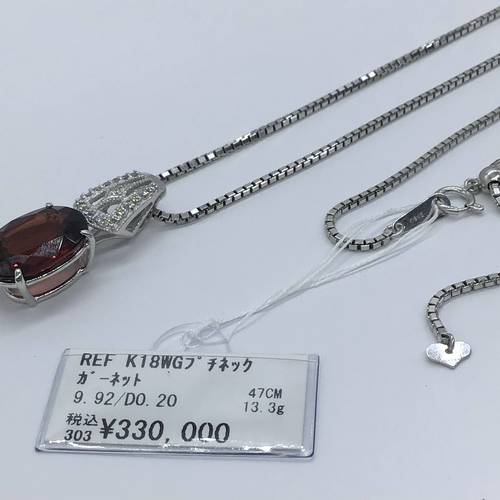 | コメント | 1月誕生石のガーネットは9キャラット以上の大きな石でバチカン部分にはダイヤモンドが施され、豪華なネックレスになっています。 スライドアジャスターにより長さ調整可能。 |