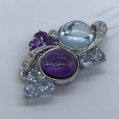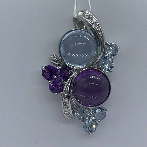 大小のブルートパーズとアメジストの透明感が可愛らしく、清楚な感じのペンダントトップです。
