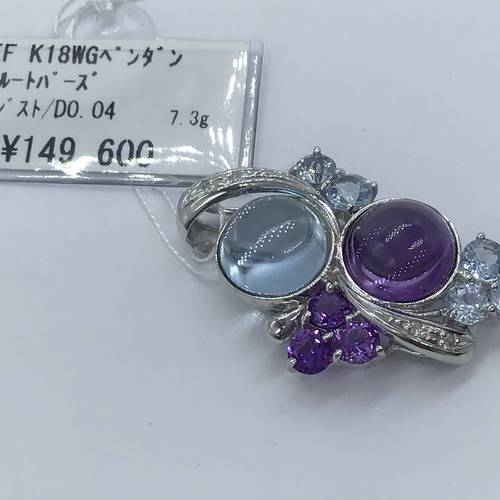 K18WGペンダント ブルートパーズ アメジスト/D0.04