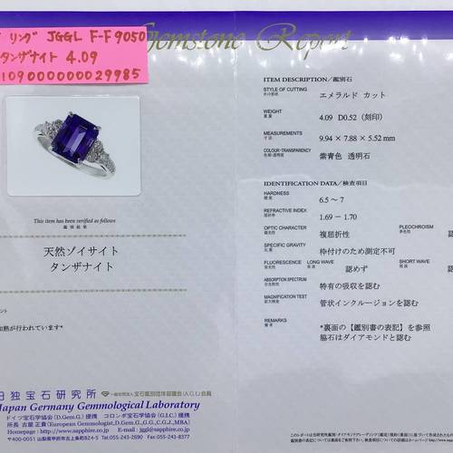 | コメント | 12月誕生石の タンザナイトは深い青の輝きが印象的。角度を変える度に青や紫が強くなる多色性の宝石です。身につける人を守るパワーがあります。鑑別書付き。 |