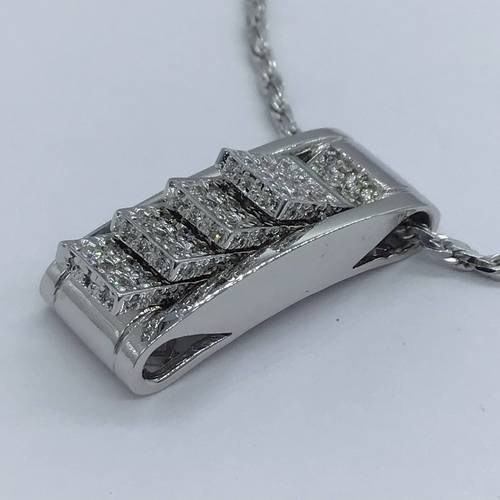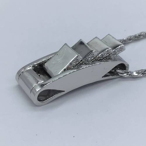 | コメント | 4面が段々になっていて、それぞれ動きます。ダイヤモンドがふんだんに施され、チェーンもスクリューになっているので動くたびにキラキラと豪華です。スライドアジャスターにより長さ調整が可能です。 |