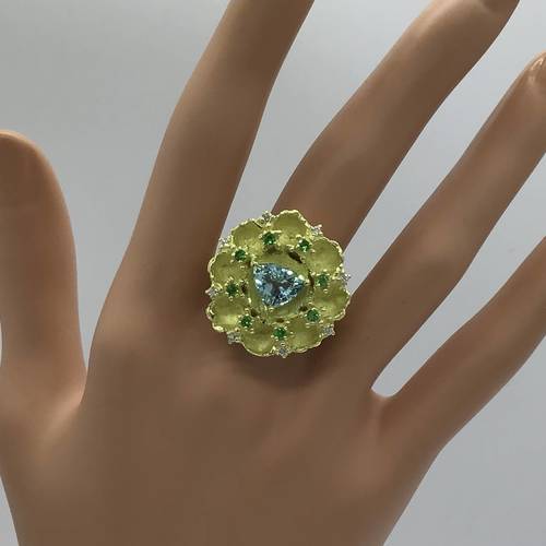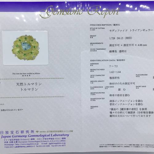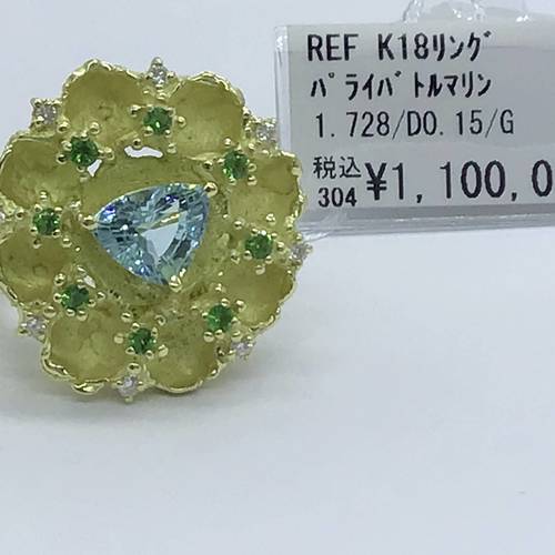 | コメント | 10月誕生石のトルマリン。カラーバリエーションの豊かさが魅力の一つですが、中でも最高評価を受けているのが『パライバトルマリン』です。艶消しのゴールドがトリリアンカットのトルマリンを引き立てています。鑑別書付き。 |