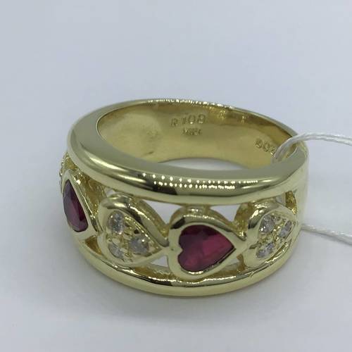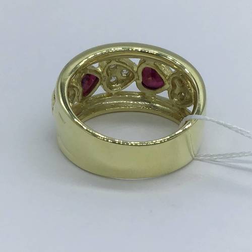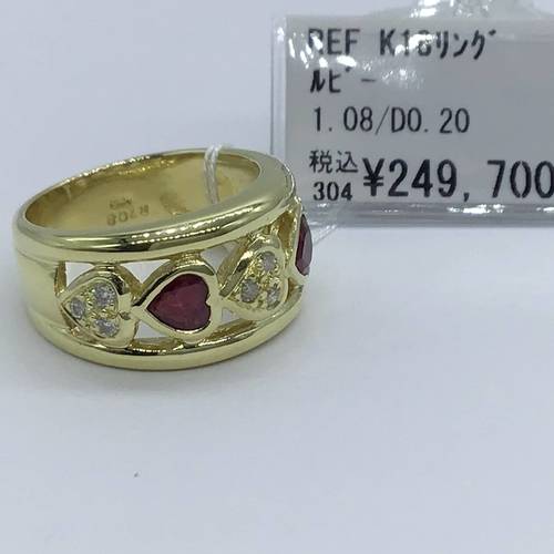 | コメント | 7月誕生石のルビー2石と4月誕生石のダイヤモンド3石がハートのモチーフで交互に並べられた可愛いリングです。 |