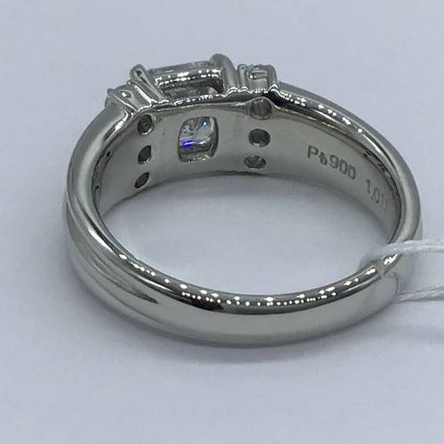 | コメント | 4月誕生石のダイヤモンドが真ん中に1粒1キャラット以上、両サイドに3石づつ施された豪華なリングです。鑑定書付き。 |