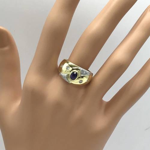 | コメント | 真ん中に9月誕生石のサファイア、大小のダイヤモンドが4石散りばめられた個性的なリングです。 |