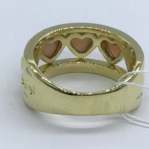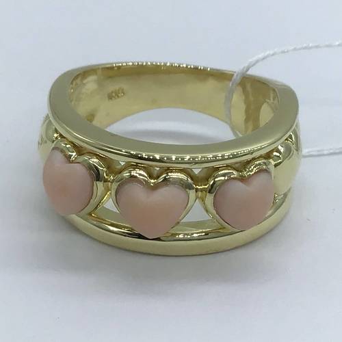 | コメント | 3月誕生石、ぷっくりとしたピンクのハートのサンゴ(ヨーロッパでは『エンジェルスキン』と呼ばれ人気があります)が3石施された可愛らしいリングです。 |