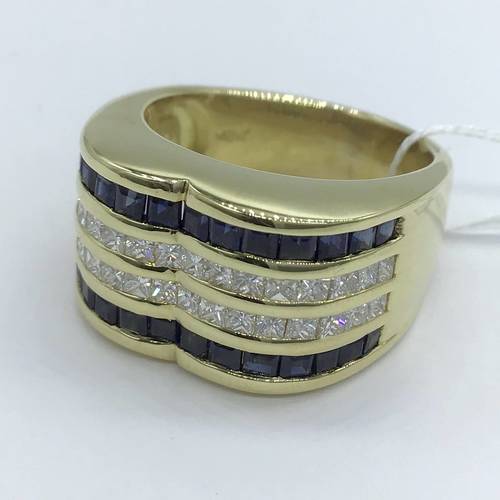 | コメント | 真ん中2列はダイヤモンド、上下に2列はサファイアが施されたクールでおしゃれなリングです。 |