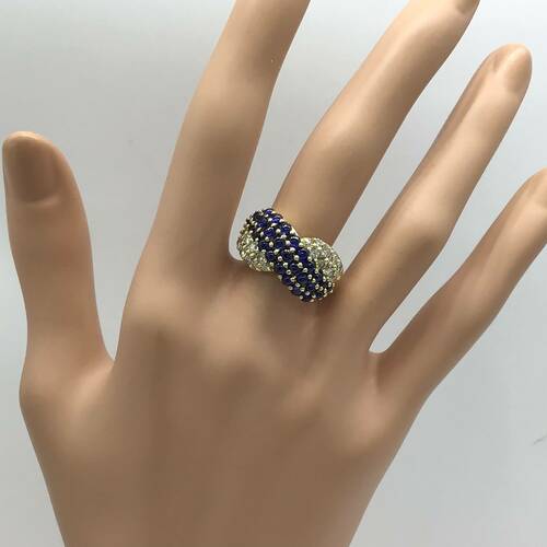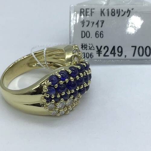 | コメント | 9月誕生石のサファイアがウェーブ状に施され、両サイドにはダイヤモンドが施された豪華なリングです。 |