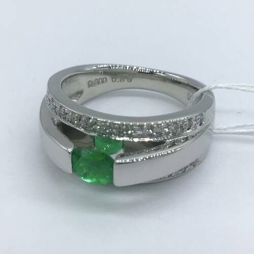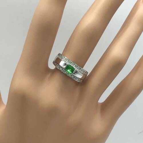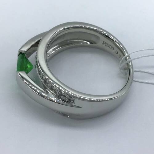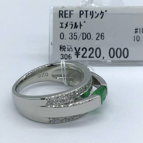 | コメント | 5月誕生石のエメラルド、3連のようなデザインでエメラルドが施されている真ん中の部分だけ突出した感じになっています。上下の部分はダイヤモンドが施され、豪華であまり無いデザインのリングです。3枚目の写真がわかりやすいです。 |