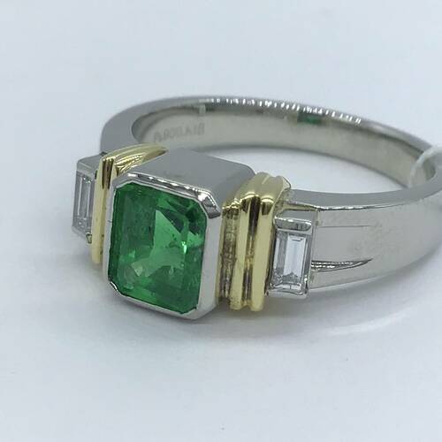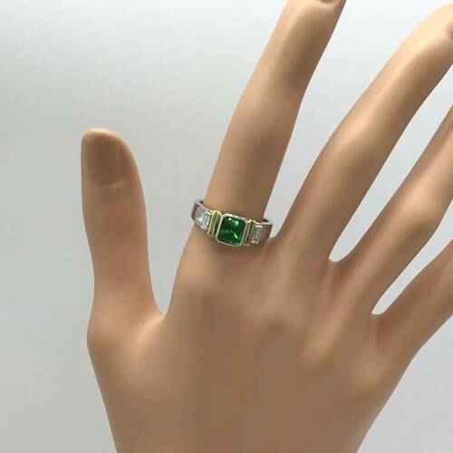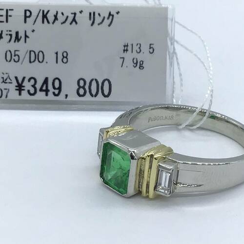 | コメント | 5月誕生石のエメラルドは真ん中に1s石、両サイドにはK18とダイヤモンドが施されたメンズリングです。女性が着けてもカッコいいです。 |
