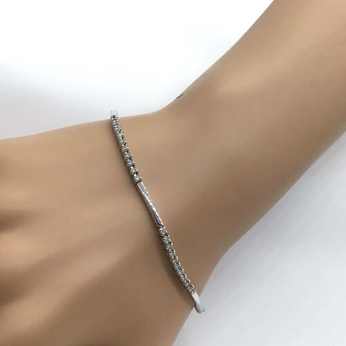 | コメント | 4月誕生石のダイヤモンドが10石づつ、5カ所に施された、輝きが豪華なブレスレットです。 |