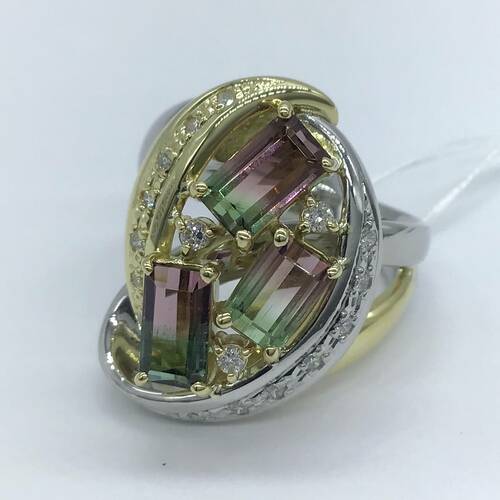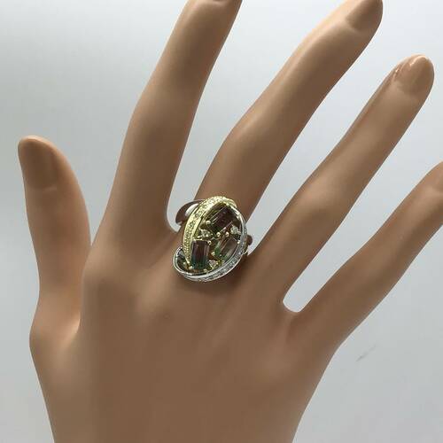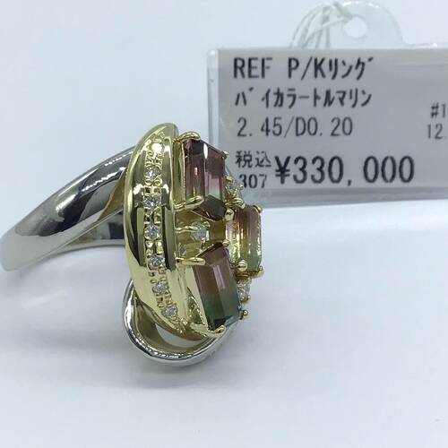 | コメント | 10月誕生石のトルマリンは「全ての色がある」と言われるほど多彩な色を持ちます。その中でもバイカラートルマリンは2色の素晴らしいハーモニーが魅力。回りはプラチナとゴールドの2色使いで、それぞれダイヤモンドが施された豪華なリングです。 |