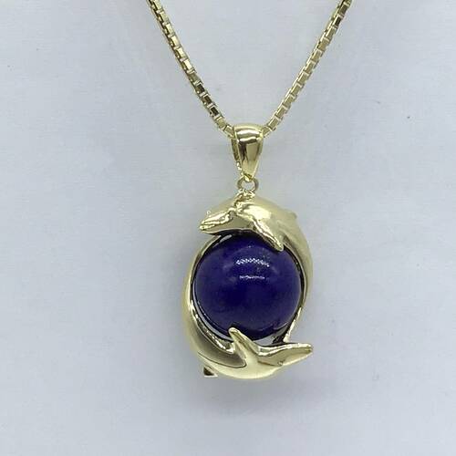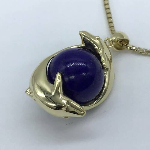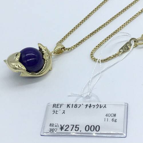 | コメント | 2頭イルカが12月誕生日のラピスラズリを抱いたデザインが可愛らしいネックレスです。 |