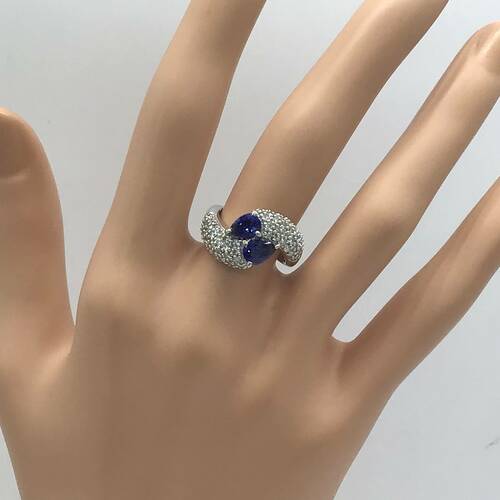 9月誕生石のサファイアは結婚45周年記念石でもあります。サファイアのサイドにはダイヤモンドが敷き詰められた豪華なリングです。
