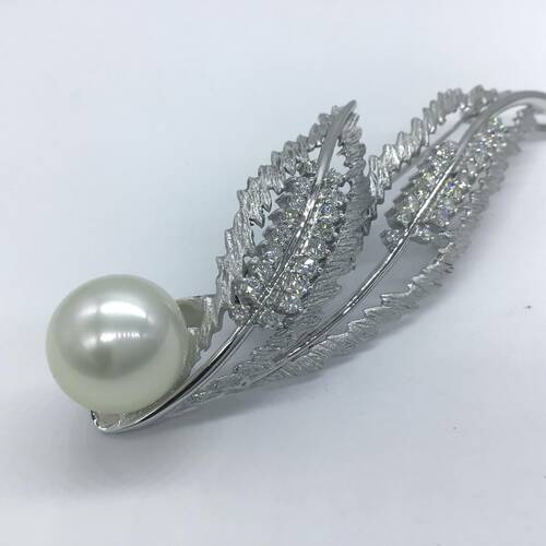 | コメント | 6月誕生石のパールは12MM玉と大きいぱーるです。羽部分は艶消しで中にはダイヤモンドが施された豪華なブローチです。お持ちのチェーンを付けてネックレスとしても使えます。 |