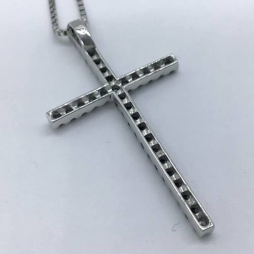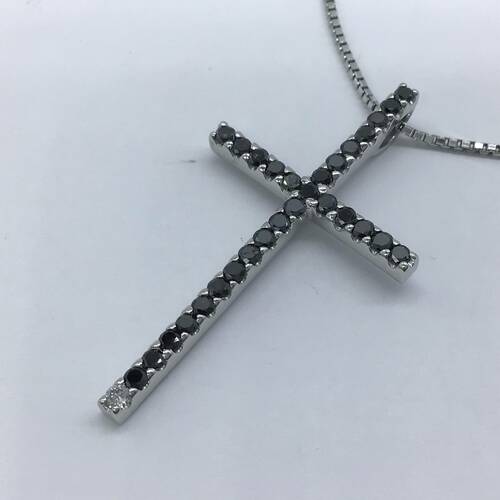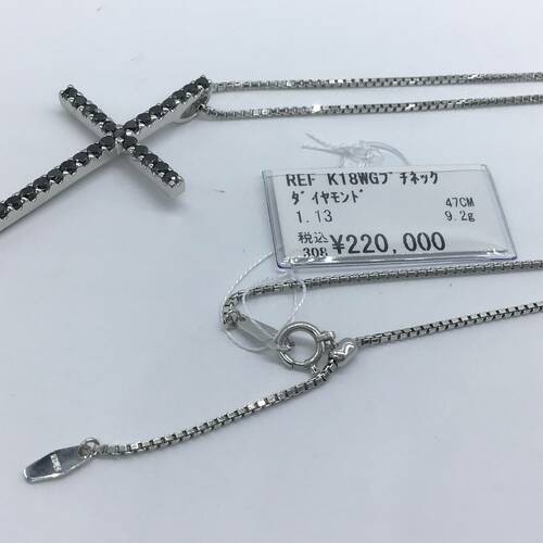 | コメント | 不動の人気のクロスのネックレスです。ブラックダイヤモンドが使われ、クールでカッコいいデザインです。スライドアジャスターにより長さ調整可能。 |