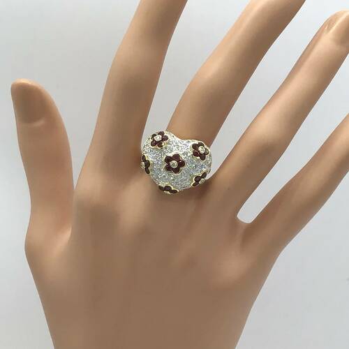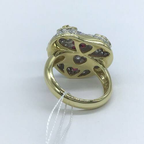 コロンとしたハートのモチーフのダイヤモンドのパヴェリングです。ハートの中にはルビーの可愛い花が施されています。