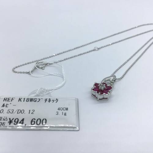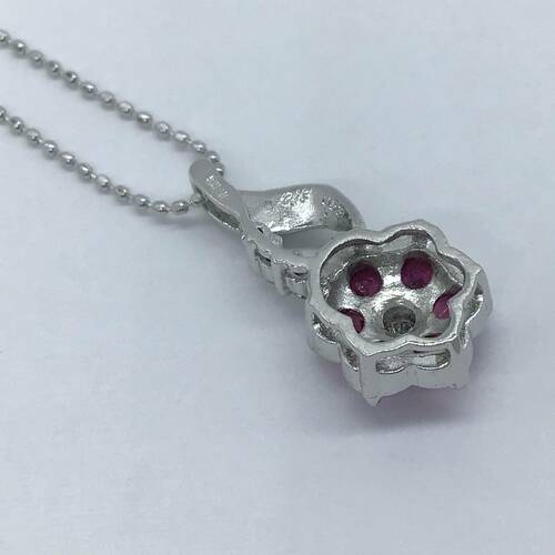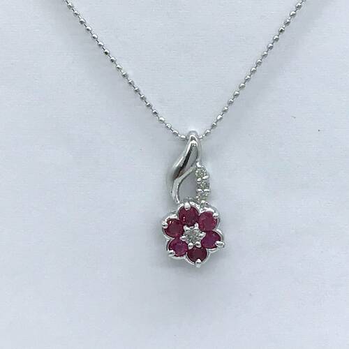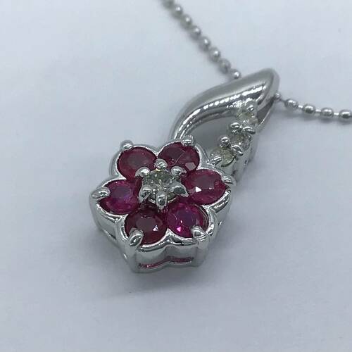 | コメント | 7月誕生石のルビーが一輪の花のようなネックレスです。 |