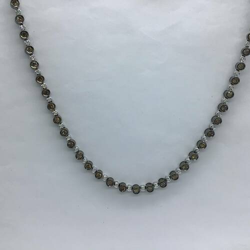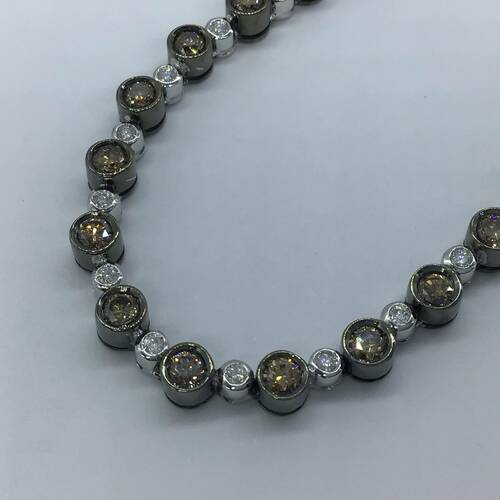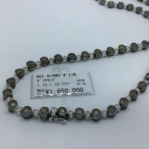 | コメント | 1.30キャラットのダイヤモンドと、7.50キャラットのブラウンダイヤモンドが、交互に一周全て繋がった豪華なネックレスです。ブラウンダイヤモンドは肌馴染みが良く、その人が持っている本来の美しさを引き立てます。 |