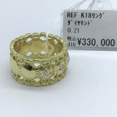 | コメント | 透かし柄になっいるので重さを感じさせないデザインです。ダイヤモンドが5石施されたおしゃれで豪華なリングです。 |