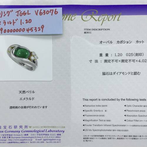 P/Kリング[JGGL] エメラルド1.20/D0.25 #11.5