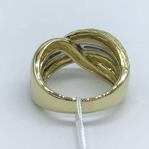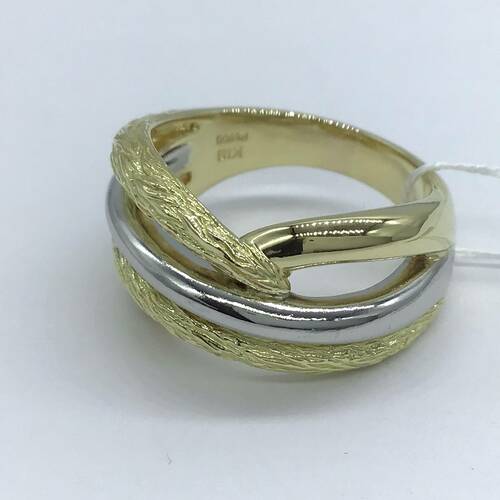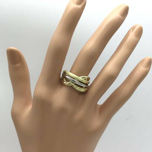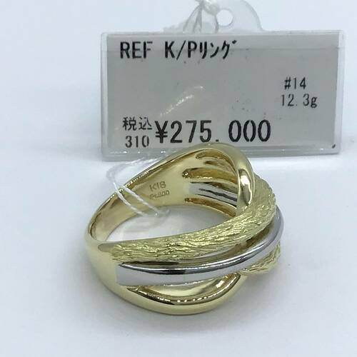 ゴールドとプラチナ2色で構成され、個性的なデザインのおしゃれなリングです。