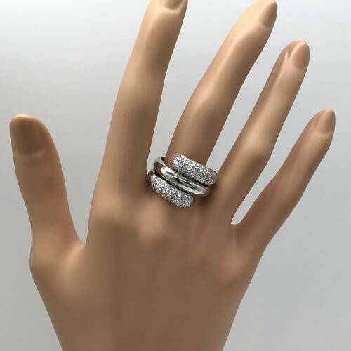 | コメント | 2重スパイラルのようなデザインのリングです。上下にはダイヤモンドが敷き詰められ、とても豪華な輝きです。 |
