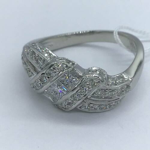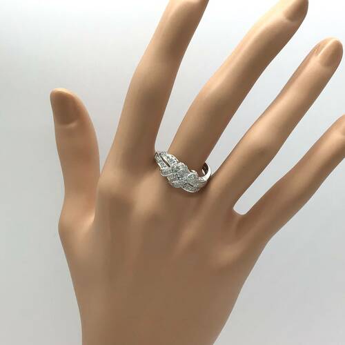 | コメント | 真ん中にはスクエアカット、2種類のカット、側面にもダイヤモンドが施された豪華な輝きのリングです。 |