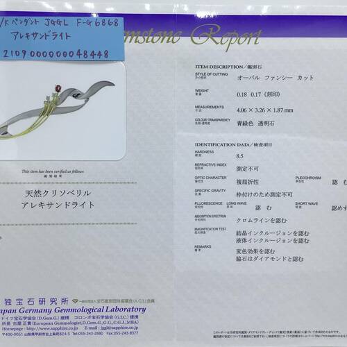 | 主石 | アレキサンドライト |