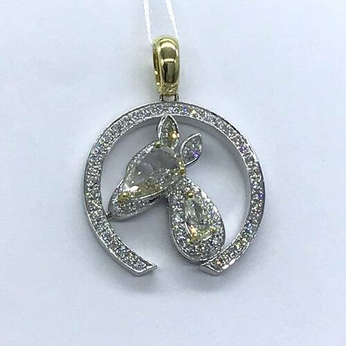 | コメント | シッポがクルッと縁取りになった可愛らしいネズミのモチーフです。 顔には1.15キャラットのダイヤモンドが、全体にもダイヤモンドが施された豪華なペンダントトップです。 |