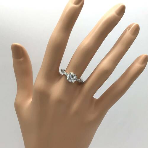 一粒のダイヤモンドの立爪、シンプルな形だからこそ飽きのこない、長く愛用できる豪華なリングです。鑑定書付き。
