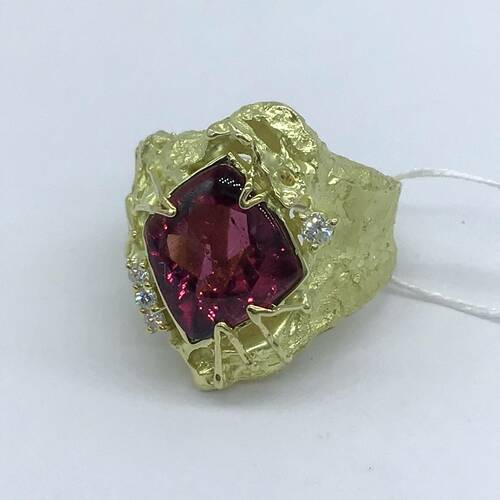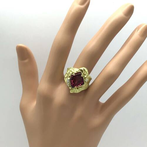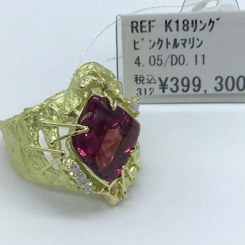 | コメント | 10月誕生石のトルマリンには「全ての色がある」と言われるほど多彩な色を持ちます。赤に近いピンクトルマリンは4.04キャラットと豪華です。ハンドメイド風な個性的なリングです。 |