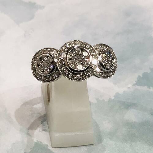 | コメント | ミル打ちと鏡面仕上げのコントラストが印象的なデザイン。もちろん、輝きの綺麗なダイヤモンドが使用されています。P3 |