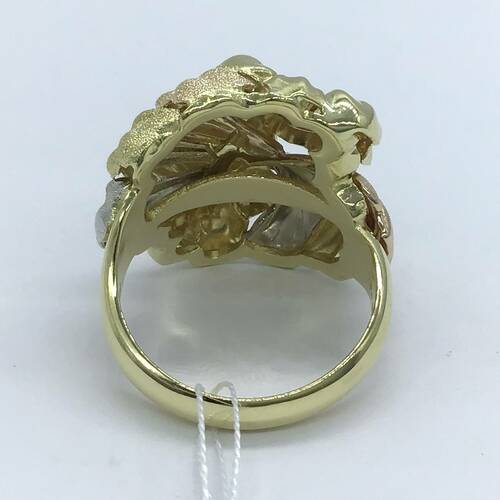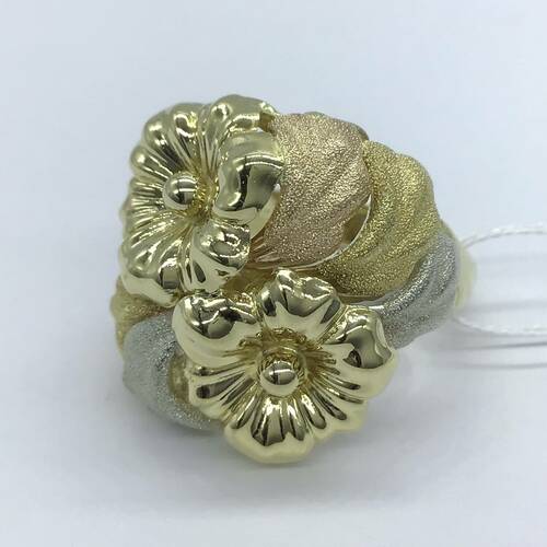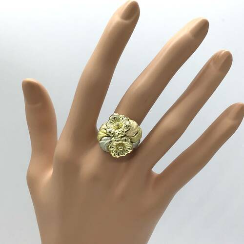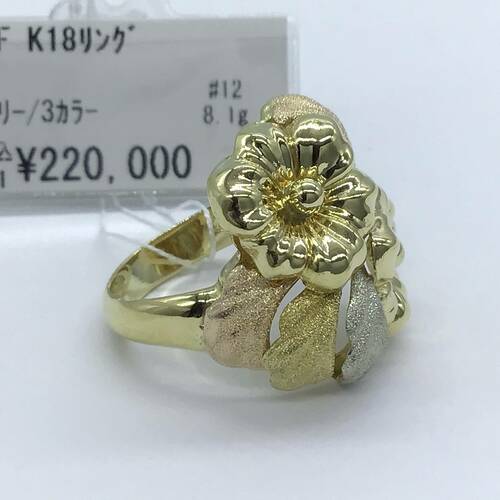 | コメント | ゴールドの花が2輪、サイドには艶消しの3ゴールドの葉が施された、おしゃれな存在感のあるリングです。 |