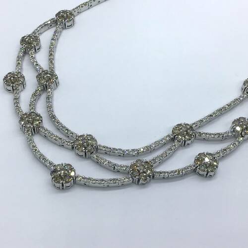 ブラウンがかったダイヤモンドが、レース編みのような華奢なデザインが、豪華で素敵なネックレスです。