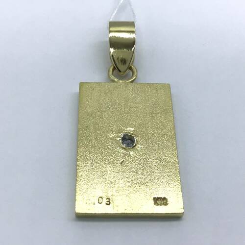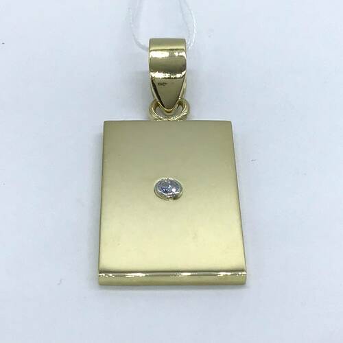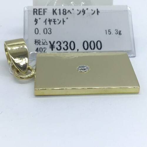 K18ゴールドのプレートにポイントでダイヤモンドが1石施されたペンダントトップです。シンプルなデザインなのでデイリーに使えます。
