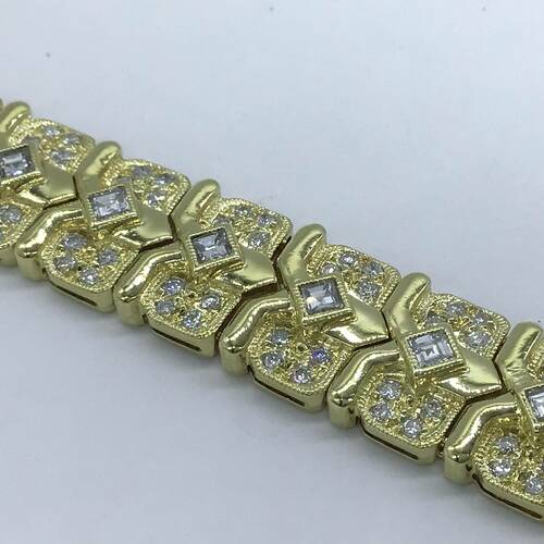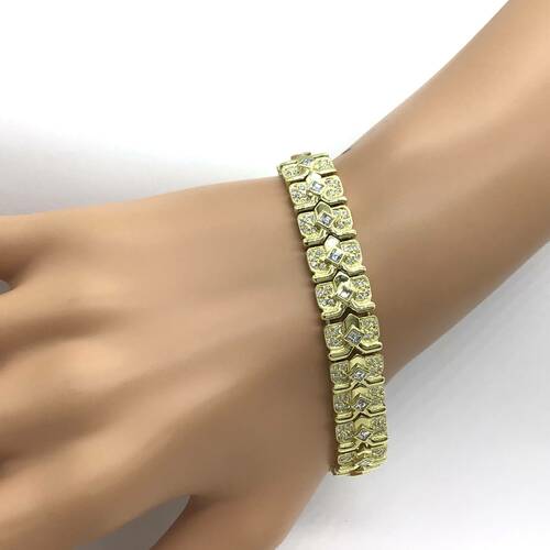 全面にダイヤモンドが施され、総キャラットは3.53キャラットになる、とても豪華な輝きのブレスレットです。繋ぎ目はほとんどわからない繊細なデザインです。