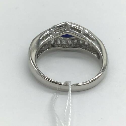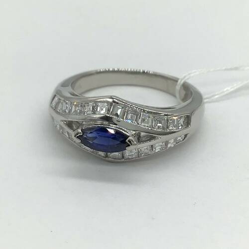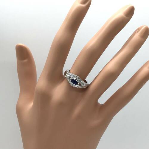 | コメント | 9月誕生石のサファイアが中心に1石、上下にはダイヤモンドが施された、おしゃれなデザインのリングです。 |