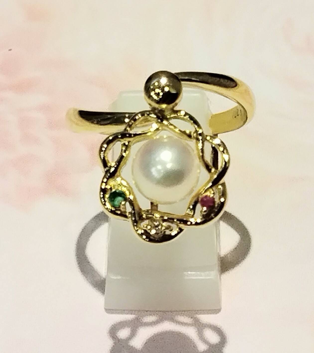 K18リング アコヤ エメ/ルビー/D0.01 #10.5
