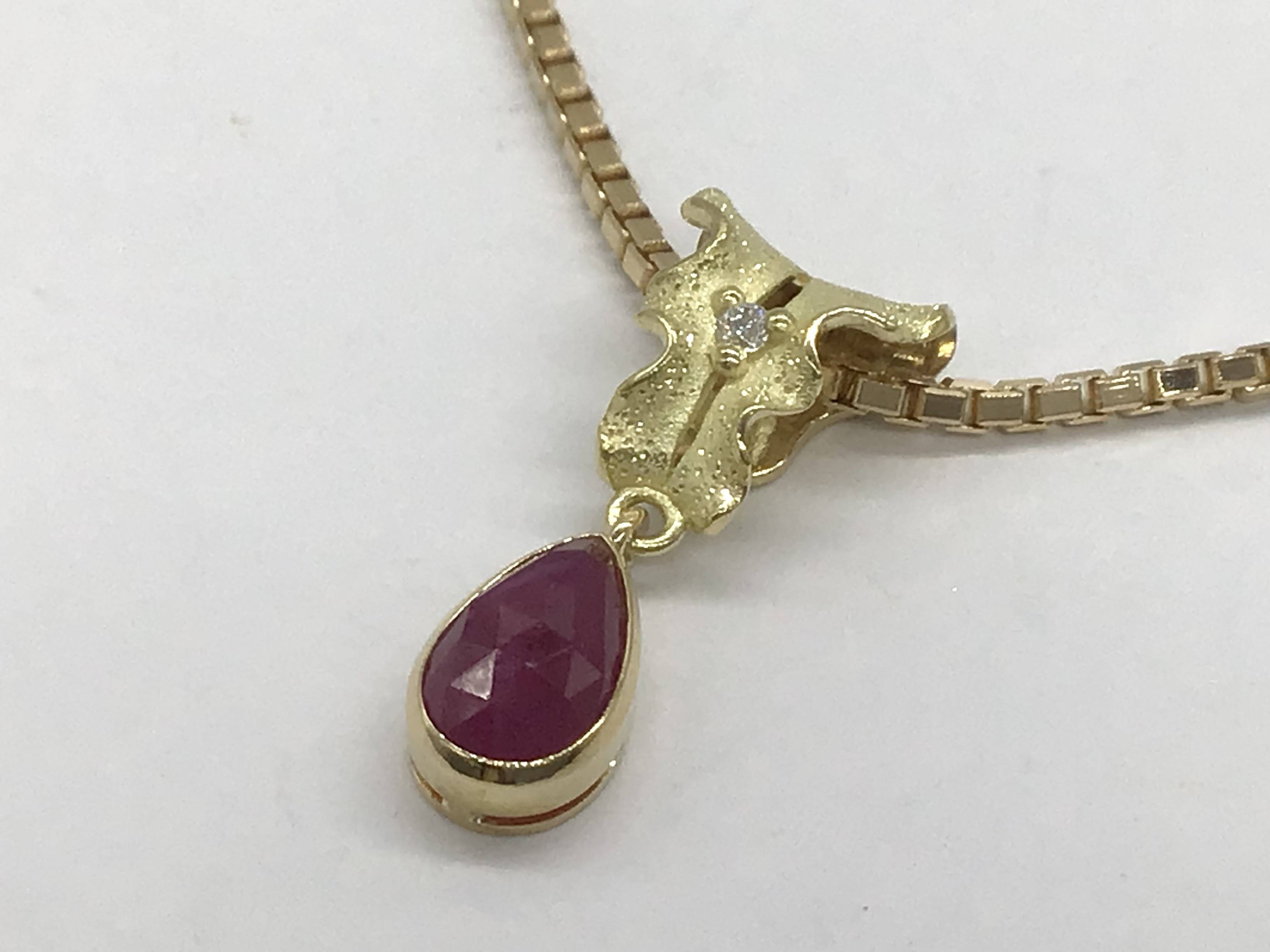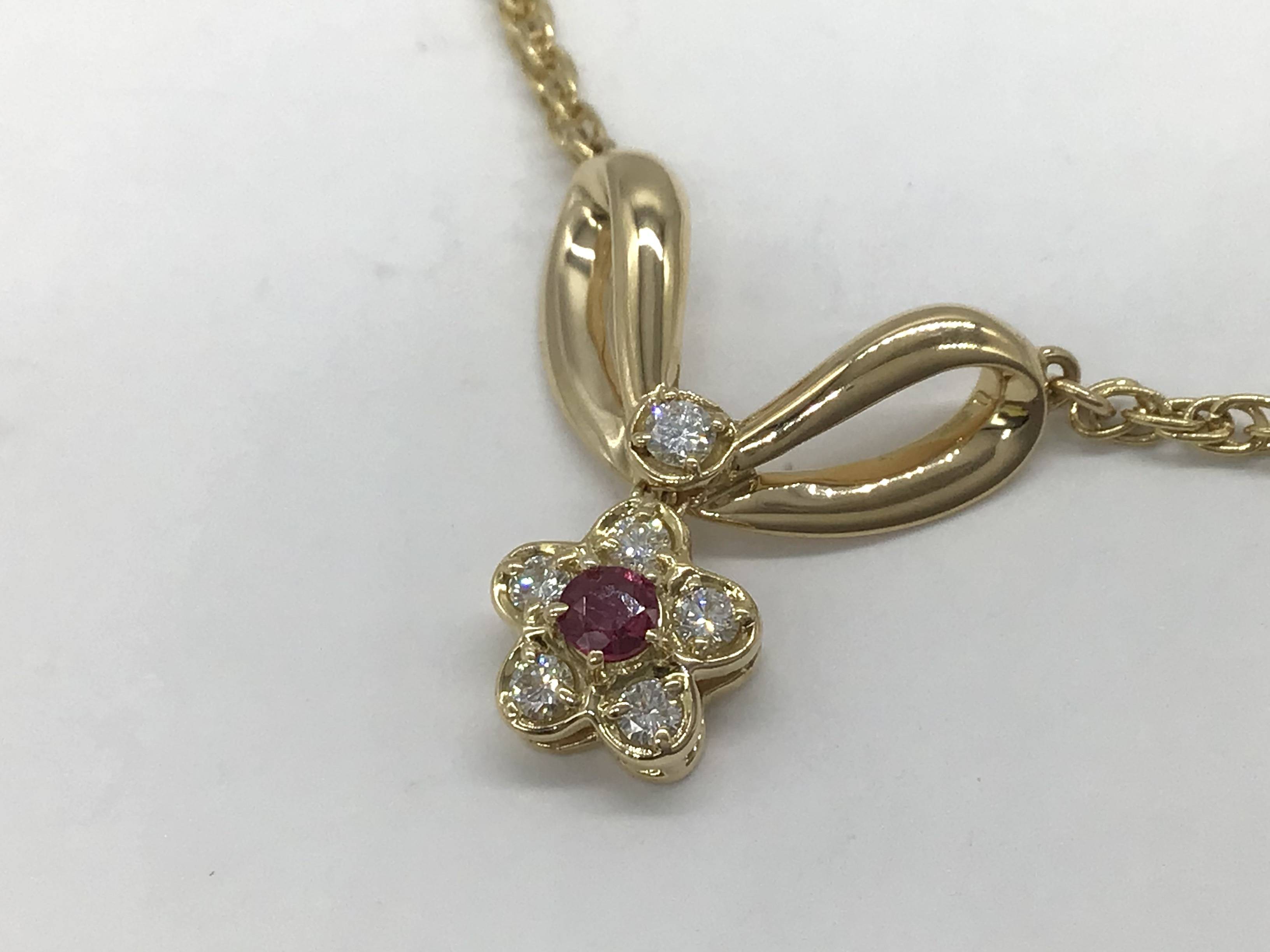 K18デザインネックレス ルビー0.13/D0.19 44CM