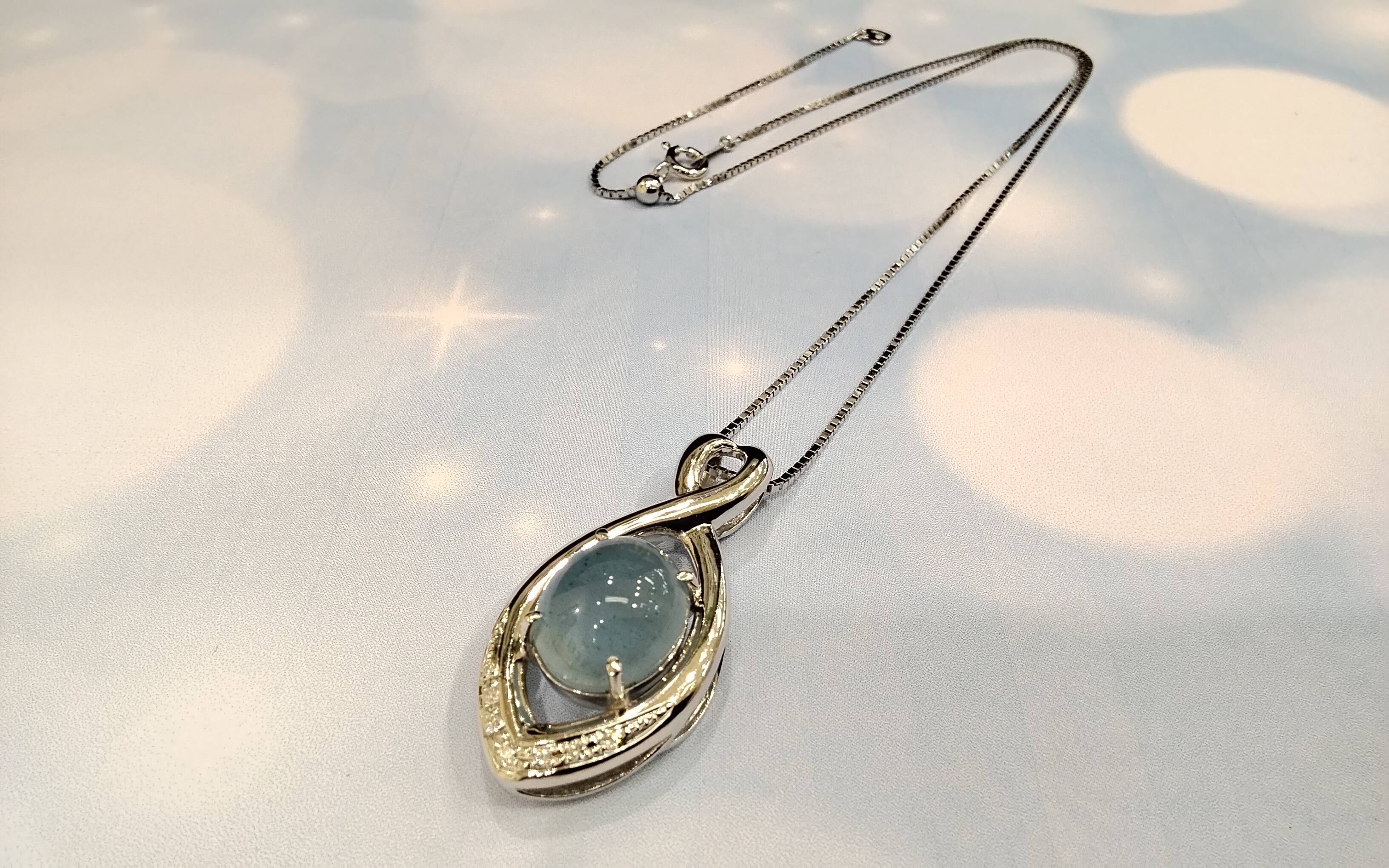 K18WG プチネックレス アクアマリンキャッツアイ 7.80/D0..7/イタリー 45cm