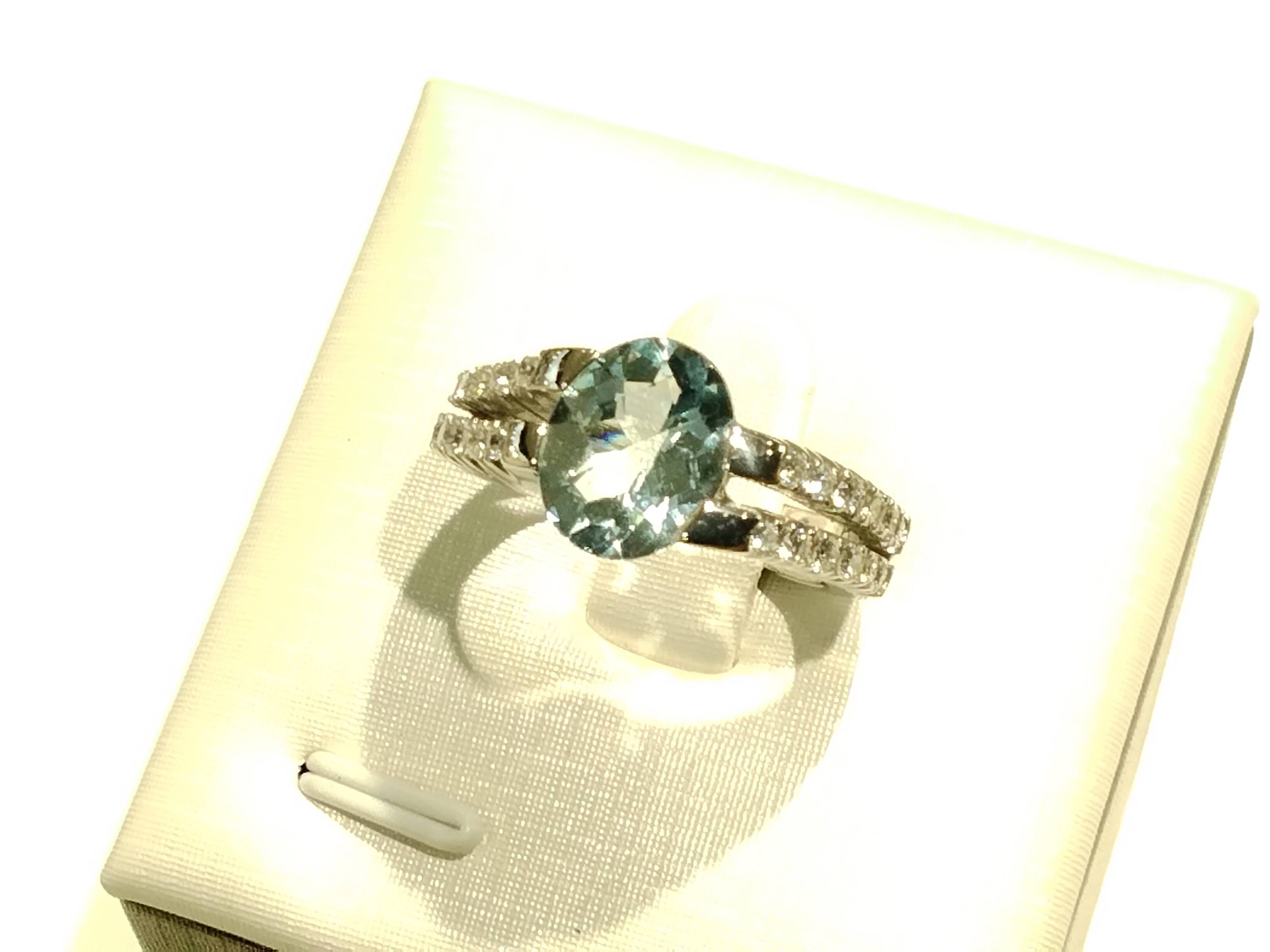 K18WGリング#11.5/アクアマリン/ダイヤモンド