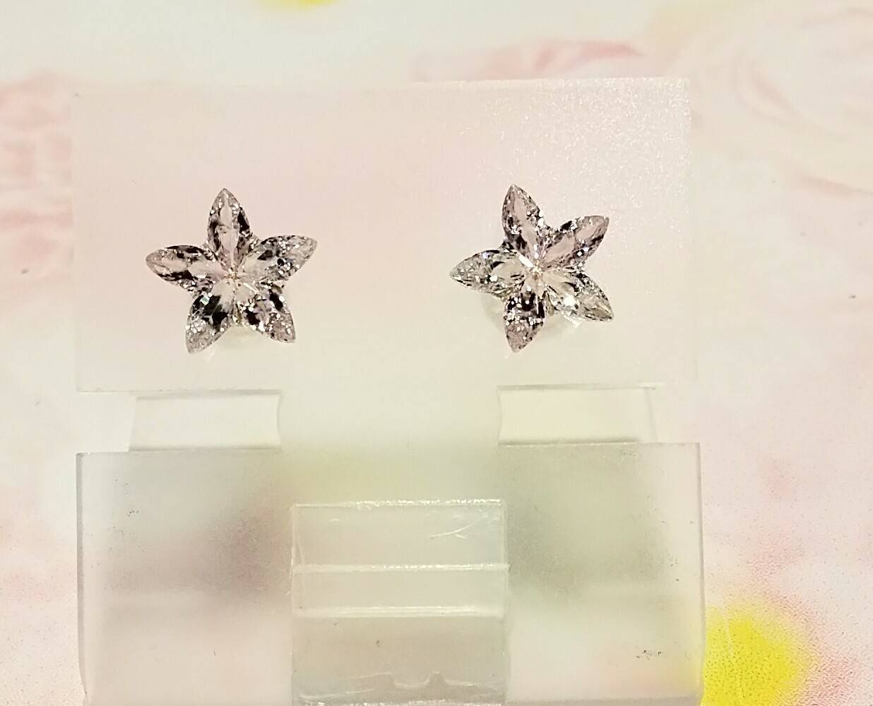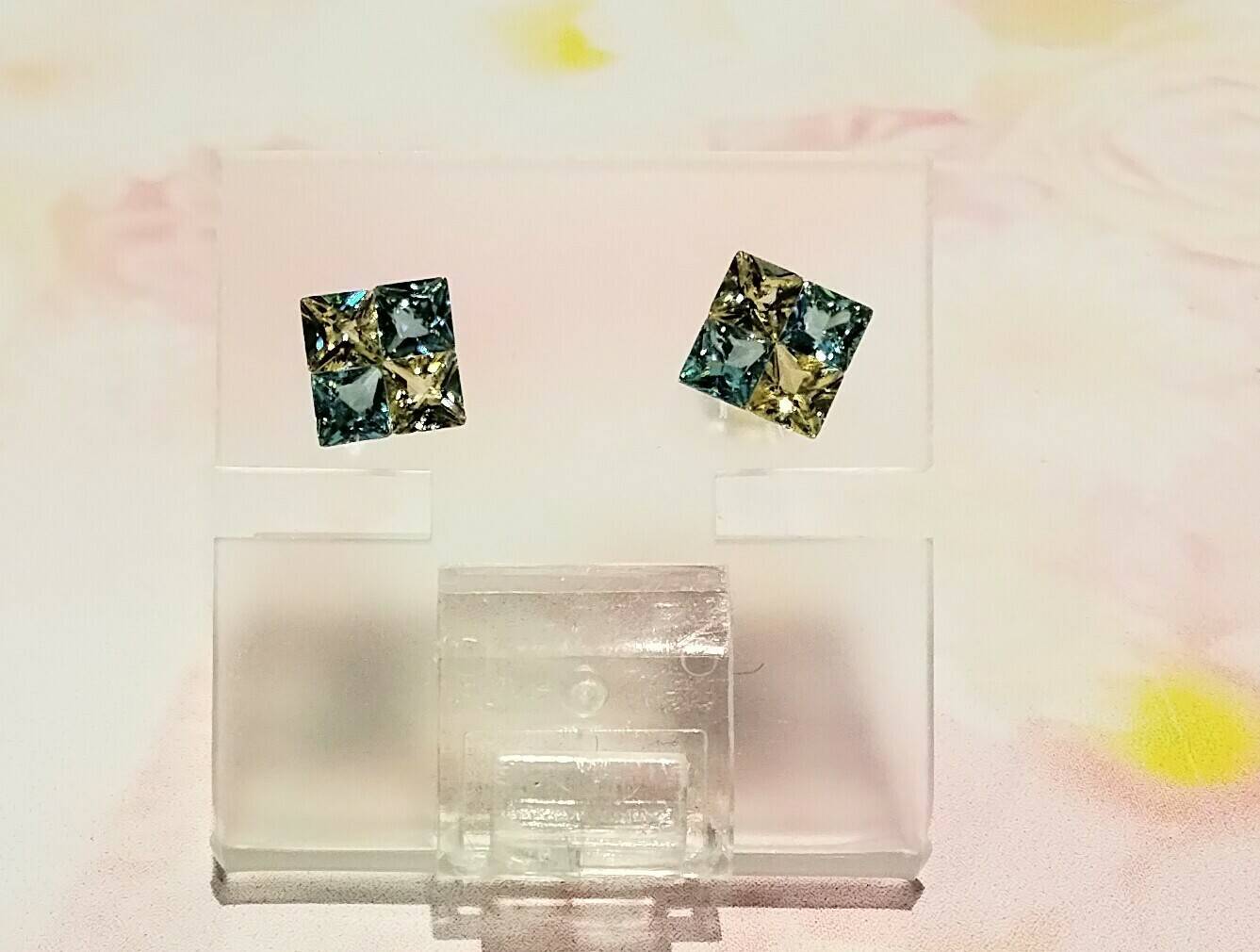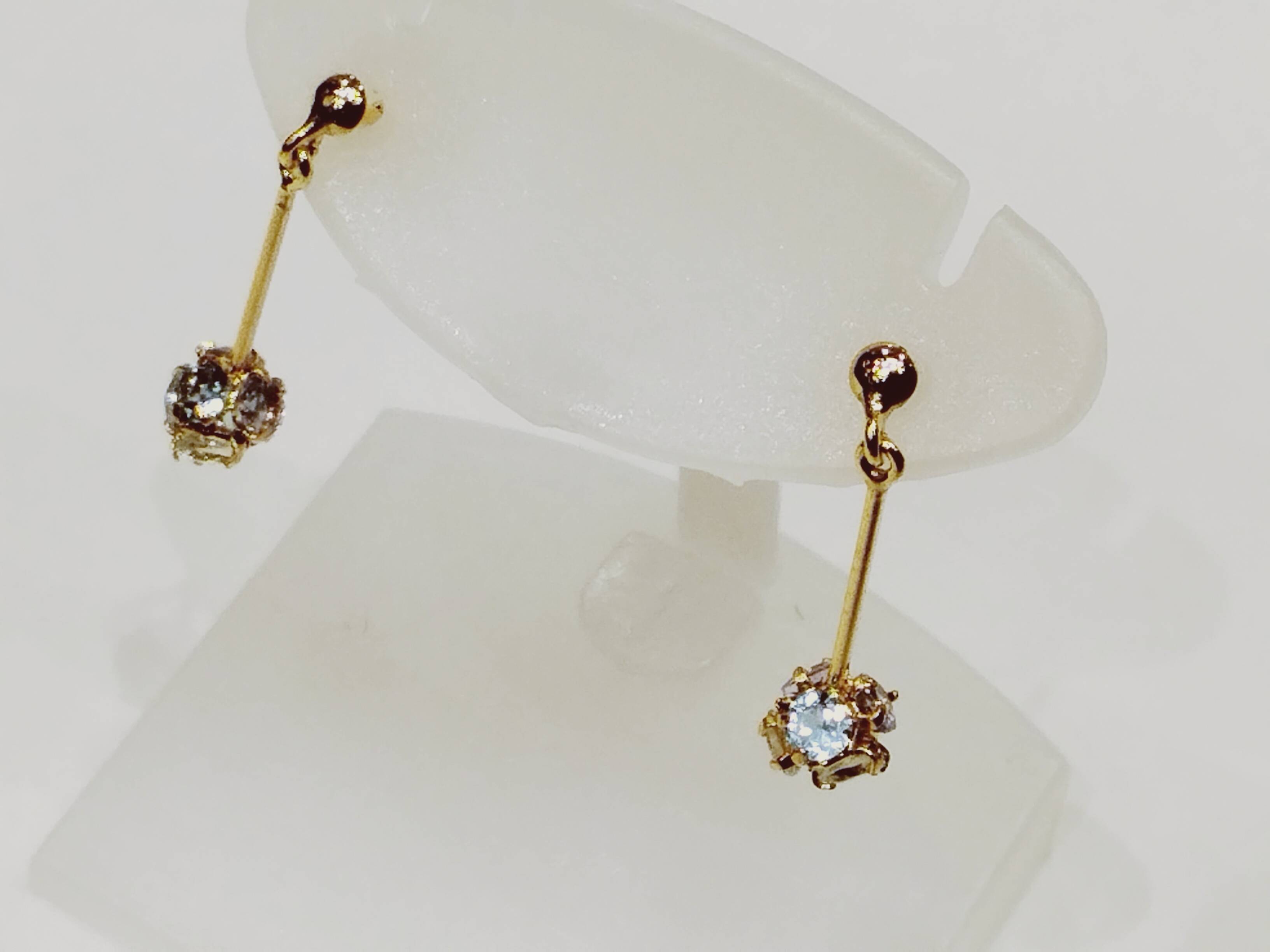 K18ピアス CZ キイロ/ミズイロ