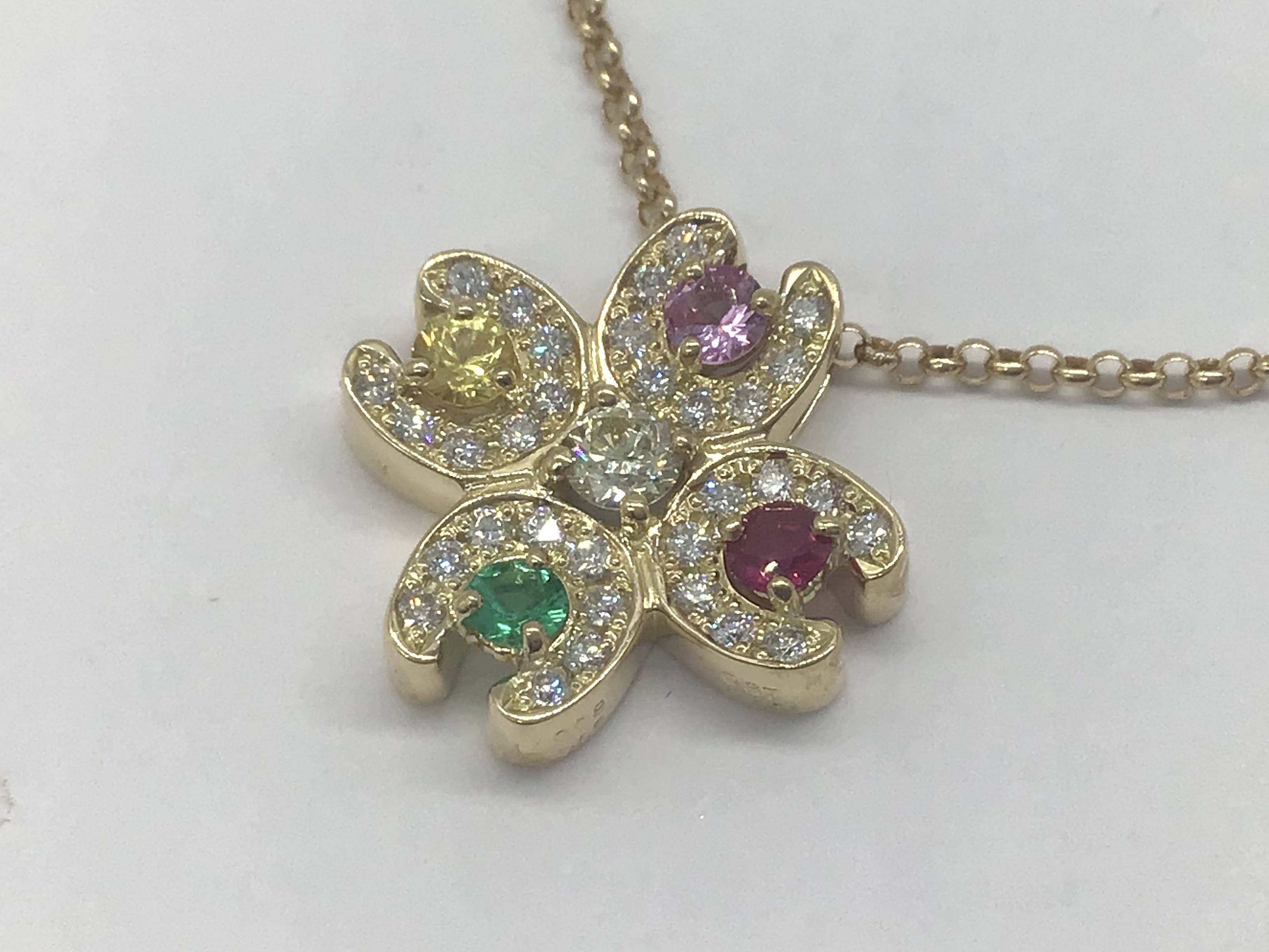 K18プチネックレス マルチカラー ルビー/サファイア/エメラルド/ダイヤモンド 50CM