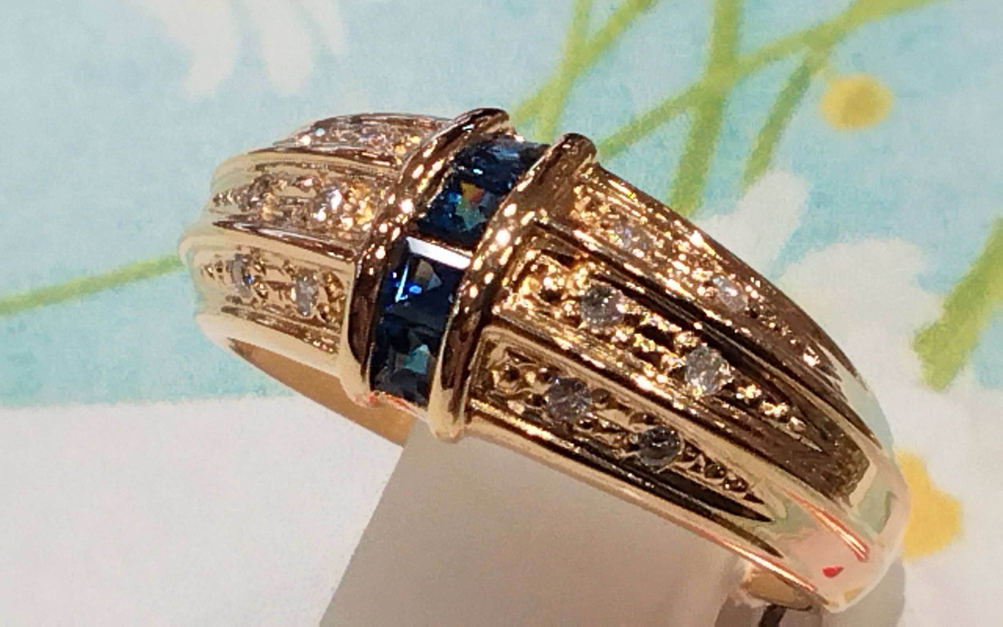 K/Pメンズリング ダイヤモンド0.23/サファイア #16