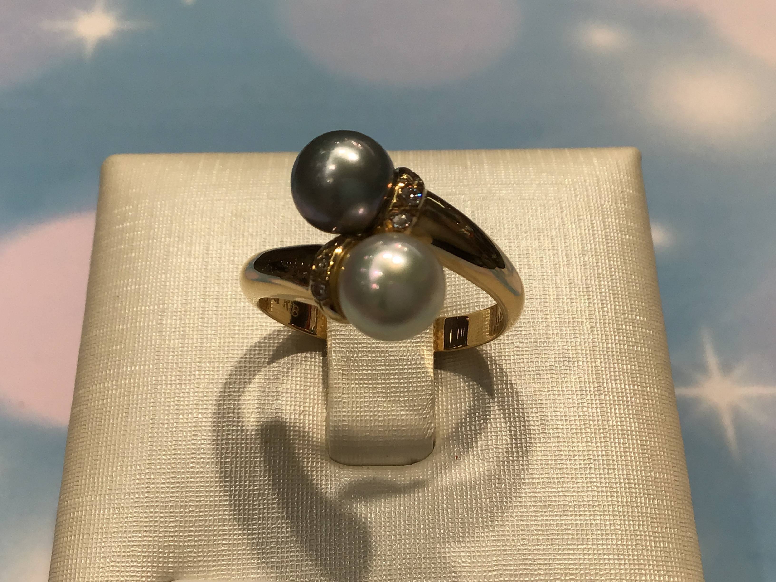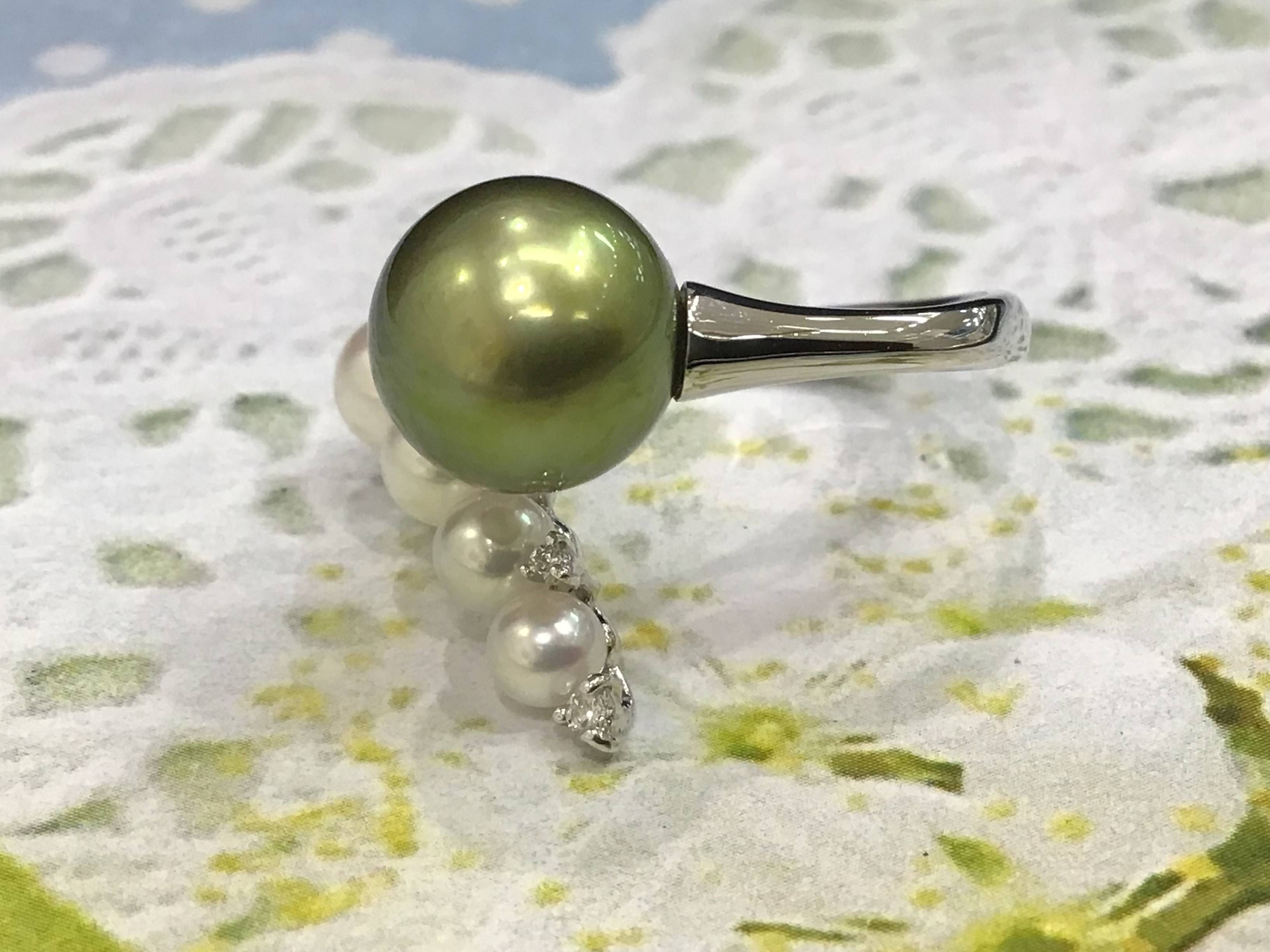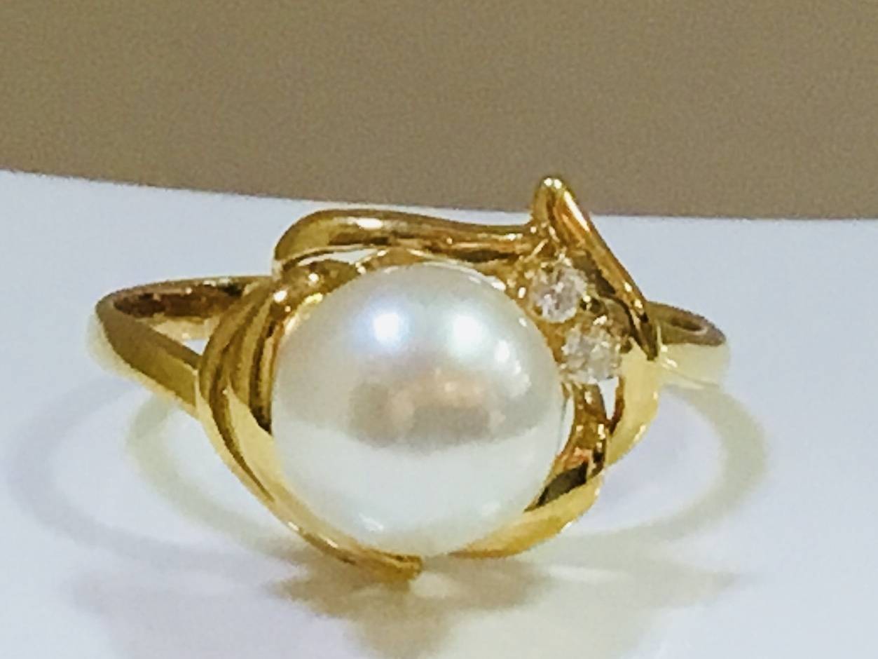 K18リング アコヤ7.5MM/ダイヤモンド #13