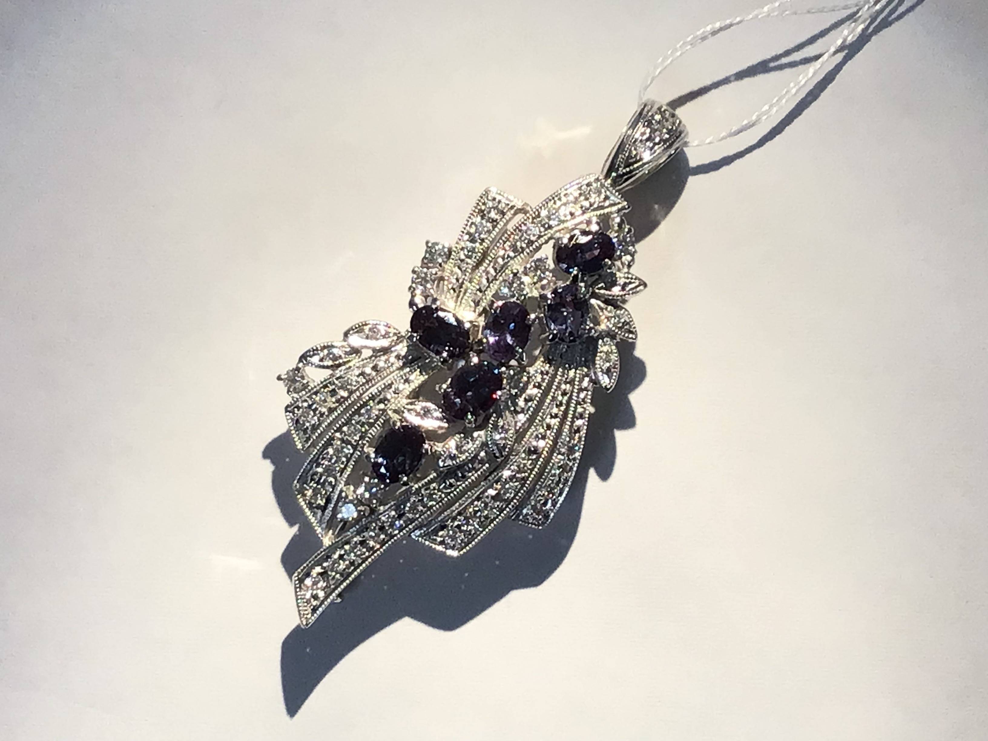 K18WG/K14WGブローチ[JGGL] アレキサンドライト1.65/D0.46